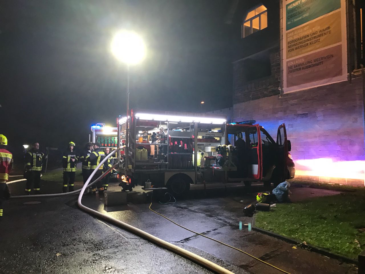 Die Leitstelle Koblenz alarmierte die Feuerwehren Oberwinter, Rolandswerth und Remagen am Montag den 06.November gegen 16:45Uhr zu einer ausgelösten Brandmeldeanlage ins Arp-Museum Rolandseck. Vor Ort stellte sich nach einer ersten Erkundung heraus, dass es in einem Verteilerraum brannte. Der unter schwerem Atemschutz vorgehende Angriffstrupp konnte das Feuer mittels Pulver- und Kohlendioxidlöscher schnell bekämpfen. Daraufhin wurde das Gebäude mit Blick auf die vorhandenen Ausstellungsstücke mit Bedacht belüftet. Es kamen dabei keine Personen zu Schaden. Die Einsatzstelle wurde nach erfolgreicher Belüftung an die Polizei und den Eigentümer übergeben.