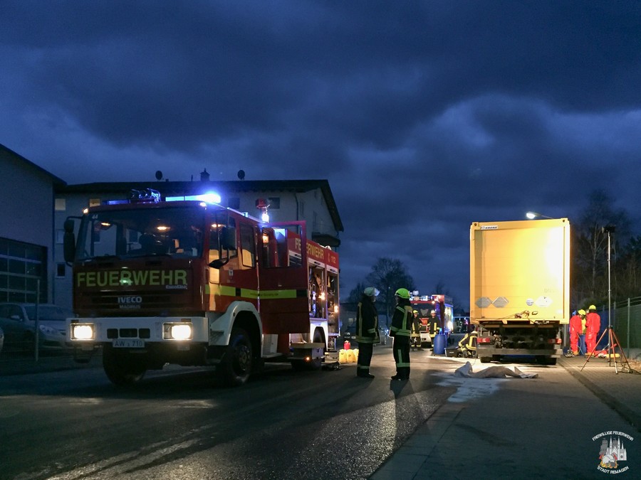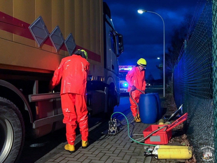 Am Freitagnachmittag alarmierte die Feuerwehr Sinzig den Gerätewagen-Gefahrgut der Einheit Remagen zu einem Einsatz nach Sinzig. Im Gewerbegebiet lief aus einem defekten, mehrere hundert Liter fassenden LKW-Tank Dieselkraftstoff aus.