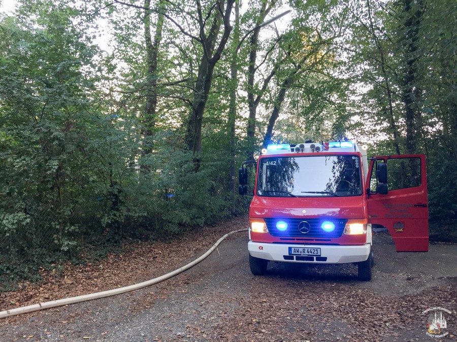 Am Sonntagabend wurde die Feuerwehr Remagen zur Unterstützung der Einheiten Oberwinter und Rolandswerth alarmiert. Zunächst meldeten Zeugen der Integrierten Leitstelle in Koblenz eine Rauchentwicklung im Freien, die zuerst ausgerückten Einsatzkräfte aus Oberwinter stellten bereits auf der Anfahrt eine starke Rauchentwicklung fest und forderten Unterstützung aus Remagen an. An der Einsatzstelle brannte bei Eintreffen des ersten Fahrzeugs eine Gartenlaube in voller Ausdehnung. Aufgrund der entlegenen Lage der Brandstelle musste die Löschwasserversorgung über eine lange Wegstrecke aufgebaut und sichergestellt werden. Mehrere Trupps löschten die Flammen und bedeckten das Brandgut abschließend mit einem Schaumteppich, damit ein erneutes Wiederaufflammen verhindert wurde. Die mit großen Löschwassertanks ausgerüsteten Fahrzeuge der Stützpunktfeuerwehr mussten vor Ort nicht eingesetzt werden.