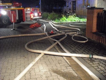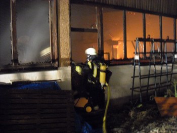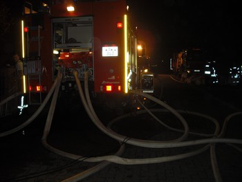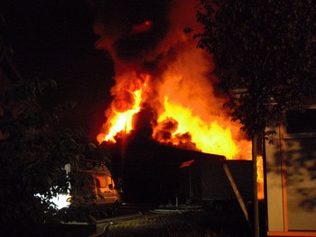 Am 25.07.2013 um 00:02 Uhr wurde die Feuerwehr Remagen und der Führungsdienst zu einem Feuer im Gewerbegebiet Remagen alarmiert. Bei Eintreffen der ersten Kräfte stand eine ca. 400 qm große Lagerhalle und Werkstatt einer Schreinerei im Vollbrand. Im ersten Verlauf wurde von allen Seiten mittels C-Rohren, teilweise unter Atemschutz , eine Riegelstellung vorgenommen, um angrenzende Wohnhäuser und Lagerhallen zu schützen. Mit der DLAK 23/12 wurde mittels Wendestrahlrohr ebenfalls bei der Riegelstellung geholfen, außerdem wurde auch mit der Brandbekämpfung begonnen. Teilweise waren 5 C-Rohre, 1 B- und ein Wendestrahlrohr im Einsatz. Um den enormen Löschwasserbedarf und eine gewisse Anzahl an PA-Trägern zu gewährleisten, wurden die Einheiten Kripp, Sinzig( TLF 24/50) und Ahrweiler ( GW-AS) nachalarmiert. Die Einheit Kripp unterstütze den MZF 3 ( 1000 Meter B-Schlauch)bei der Wasserversorgung vom Löschmittelbehälter im Gewerbegebiet , da die Wassermenge aus dem Hydranten-Netz nicht ausreichend war. Aufgrund der Nähe des Brandobjektes zur Bahnlinie wurde der Bahnverkehr zwischen Remagen und Koblenz zeitweise eingestellt. Insgesamt waren 55 Einsatzkräfte vor Ort. Nach ca 1,5 Stunden war der Brand unter Kontrolle, Nachlöscharbeiten wurden aber bis ca 10 Uhr durchgeführt.