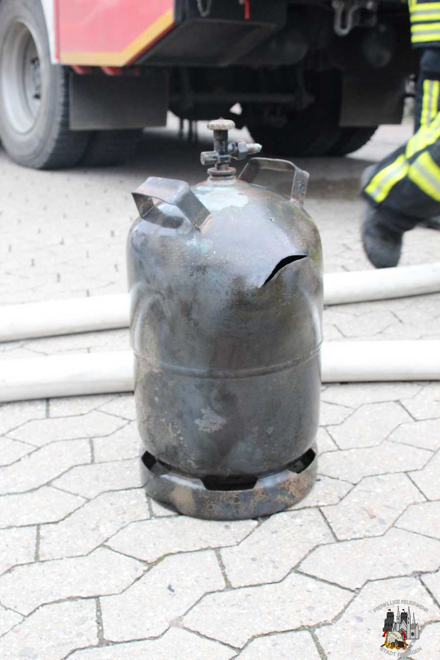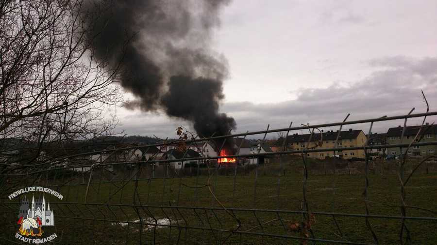 Der Brand eines Holzschuppens erforderte am Freitag gegen 15:00 Uhr den Einsatz der Feuerwehreinheiten Kripp und Remagen. Bei Eintreffen der ersten Feuerwehrkräfte explodierte eine in dem Schuppen gelagerte Gasflasche, so dass es zu einer meterhohen Feuersäule kam, unmittelbar danach stand der Schuppen, er grenzte unmittelbar an ein Wohnhaus, in Vollbrand. Die eingesetzten Kräfte leiteten sofort einen umfassenden Löschangriff ein, welcher schon nach kurzer Zeit Wirkung zeigte. Unter Atemschutz wurden insgesamt vier Rohre zur Brandbekämpfung eingesetzt, ein im angrenzenden Bereich stehender Öltank wurde vorsorglich gekühlt. Mit Hilfe zweier Wärmebildkameras konnten nach Ablöschen der Flammen weitere Glutnester ausfindig gemacht werden. Durch die enorme Hitzeentwicklung wurde sogar die Fensterscheibe eines Nachbarhauses beschädigt, Personen kamen nicht zu Schaden. Im Verlauf des Einsatzes konnten weiterhin auch mehrere direkt am Schuppen untergebrachte Kleintiere von der Feuerwehr gerettet werden. Die angrenzenden Straßen waren für die Dauer des Einsatzes bis zirka 17:00 Uhr gesperrt. Die Feuerwehreinheiten Kripp und Remagen waren mit insgesamt 40 Kräften und neun Fahrzeugen, die Polizei Remagen und der Rettungsdienst mit vier Kräften und zwei Fahrzeugen vor Ort . Angaben zur Brandursache und zur Höhe des Sachschadens konnten bisher nicht gemacht werden.