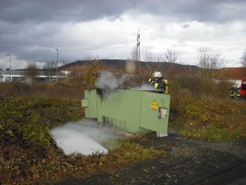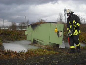 Gegen 13:50 Uhr fiel in zahlreichen Haushalten in Remagen und einigen weiteren Stadtteilen der Strom aus, kurz darauf alarmierte die Leitstelle Koblenz die Feuerwehr. Unter dem Einsatzstichwort Explosion in einem Trafohäuschens wurden die Sirenen ausgelöst. Wenige Minuten später traf das Tanklöschfahrzeug im Gewerbegebiet Remagen ein, aus einer Trafostation drang Rauch, ein Mitarbeiter des RWE, sowie die Polizei waren bereits vor Ort. Nachdem ein Fachmann bestätigt hatte, dass das Trafohäuschen stromlos ist, konnte dieses geöffnet werden. Im Inneren war ein Feuer ausgebrochen, Teile der Kunststoffverkleidung und ausgetretenes Öl brannten. Unter Atemschutz wurden die Flammen mit einem Kohlenstoffdioxid- Feuerlöscher bekämpft. Mit Hilfe der Wärmebildkamera wurde die Station anschließend kontrolliert, der Brand war vollständig gelöscht. Im Anschluss an die Löschmaßnahmen wurde etwa 30 Minuten Brandwache gehalten, danach war die Temperatur der Trafostation soweit abgekühlt, dass eine weitere Gefahr ausgeschlossen werden konnte. Die Einsatzstelle übernahm ein Mitarbeiter des RWE, seine Kollegen sorgten dafür, dass ab ca. 15:45 Uhr alle Haushalte wieder Strom zur Verfügung hatten. Während des Stromausfalls waren in den betroffenen Stadtteilen die Notfallanlaufpunkte durch weitere Wehrleute besetzt worden.