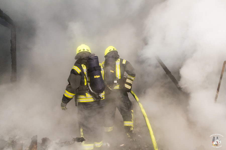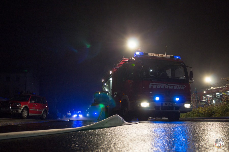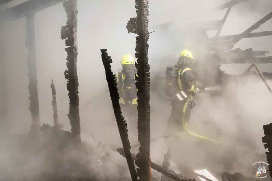 Mithilfe eines Außenangriffs über die Drehleiter und dem Einsatz mehrerer Trupps im Innern der Gebäude konnte das Feuer anschließend unter Kontrolle gebracht und abgelöscht werden. Nach Kontrolle des Brandguts mit der Wärmebildkamera und dem Abdecken mit Löschschaum konnte der Einsatz gegen Morgen beendet werden.