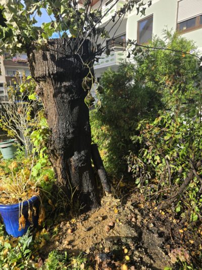 Eine Einsatzkraft der Feuerwehr Remagen war privat im Remagener Stadtgebiet unterwegs und entdeckte hierbei durch Zufall eine Rauchentwicklung im Garten eines Wohnhauses. Die Einsatzkraft stellte dort brennenden Unrat fest. Das Feuer hatte bereits auf einen nahegelegenen Baumstumpf übergegriffen. Die Einsatzkraft konnte das Feuer unter dem Einsatz von drei Feuerlöschern weitestgehend unter Kontrolle bringen und informierte über den Notruf 112 die Integrierte Leitstelle Koblenz über das Feuer. Diese alarmierte die Einheit Remagen für eine Brandnachschau. Die alarmierten Einsatzkräfte des HLFs kühlten mittels Schnellangriff den Baumstumpf herunter und kontrollierten diesen und die Umgebung mit der Wärmebildkamera.