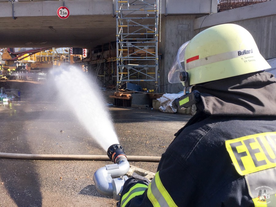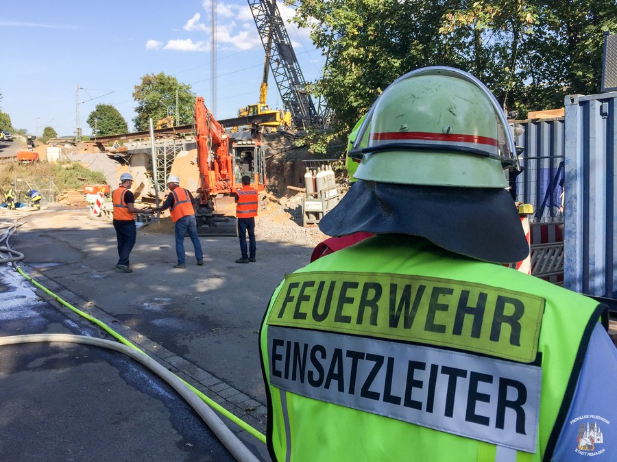 Am Sonntagmittag wurde die Feuerwehr Remagen zur Unterstützung der Einheiten Oberwinter und Rolandswerth alarmiert. Im Bereich einer Baustelle der Bahn war eine Acetylenflasche in Brand geraten. Dies machte sowohl eine Sperrung der linksrheinischen Bahnverbindung Bonn – Koblenz in beide Richtungen über einen Zeitraum von rund drei Stunden, als auch den umfangreichen Einsatz der Feuerwehr notwendig.