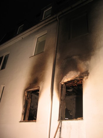 Passanten entdeckten am frühen Donnerstagmorgen eine Rauchentwicklung aus einem Gebäude in der Remagener Innenstadt. Aus dem dreigeschossigen Eckhaus, welches an einer Gasse zum Rhein gelegen ist, drang schwarzer Rauch aus einem im Erdgeschoss gelegenen Blumengeschäft. Sofort verständigten sie über den Notruf die Leitstelle Koblenz, welche um 05:48 Uhr Sirenenalarm in Remagen auslöste. Wenige Momente nach der Alarmierung, noch vor Eintreffen der ersten Rettungskräfte, zündete das Feuer im Erdgeschoss durch, zeitgleich rettete sich eine Frau aus dem Haus, diese konnte nur durch Zeugen davon abgehalten werden, zurück in das Geschäft zu laufen um eigene, zu diesem Zeitpunkt bereits aussichtslose Löschversuche zu unternehmen. Durch Passanten wurden die Bewohner der oberen beiden Etagen wachgeklingelt und von außen an die Fenster gelotst, unter denen die wenigste Rauchentwicklung zu verzeichnen war. Bei Eintreffen der Feuerwehr befanden sich noch drei Personen im Haus. Im rückwärtigen Bereich wurde ein Sprungretter in Stellung gebracht, in diesen rettete sich ein Mann aus dem zweiten Obergeschoss mit einem Sprung, bei dem er leicht verletzt wurde. Aufgrund der engen Begebenheiten vor Ort wurden an der Vorderseite des Hauses eine Steck- leiter aufgebaut, über diese gelang zwei weiteren Bewohnern die Flucht aus ihren völlig verqualmten Wohnungen. Zur Unterstützung der Einheit Remagen wurde die Feuerwehr Kripp alarmiert, welche die Kameraden insbesondere mit Atemschutzgeräteträgern und Material unterstützte. Das Feuer hatte sich zu diesem Zeitpunkt nahezu im gesamten Erdgeschoss, sowie in Teilen des Treppenhauses ausgebreitet. Mehrere Trupps drangen unter Atemschutz unter Vornahme von C.-Rohren in das Geschäft ein und löschten rasch die Flammen. In den drei Etagen wurden Abluftöffnungen geschafft, mittels zweier Lüfter gelang es, alle Räume zu entrauchen. Bei der Kontrolle der Wohnungen konnte eine weitere vermisste Person nicht aufgefunden werden, diese, so ergaben die parallel verlaufenden Ermittlungen, hielt sich zum Unglückszeitpunkt nicht im Gebäude auf. Durch den Brand wurde das Blumengeschäft vollständig, sowie das Treppenhaus teilweise, zerstört. Durch eine massive Rauchentwicklung erlitten beide Wohnungen erheblichen Schaden. Die geretteten Personen wurden dem Rettungsdienst übergeben, welcher mit 3 RTW, 1 NEF und Orgleiter vor Ort waren und die weitere Versorgung der Verletzten übernahm. Aufgrund der in allen Wohnräumen installierten Rauchmelder, sowie den Einsatz von Zeugen und Rettungskräften, sind glücklicherweise keine schlimmeren Personenschäden zu verzeichnen. Der Einsatz der Feuerwehr konnte gegen 08:30 Uhr beendet werden, die Kriminalpolizei hat die Ermittlungen zur Brandursache aufgenommen. Bürgermeister Herbert Georgi eilte noch während des Einsatzes zum Ort des Geschehens um sich selbst ein Bild von der Lage zu machen. Neben der Feuerwehr war die Polizei mit zahlreichen Beamten vor Ort, diese unterstützten die Rettungsmaßnahmen der Feuerwehr tatkräftig. Der Rettungsdienst, sowie der Organisatorische Leiter des Rettungsdienstes wurden ebenso wie Notfallseelsorger an die Einsatzstelle gerufen, um eine kurzfristige Betreuung der betroffenen Bewohner sicherzustellen.