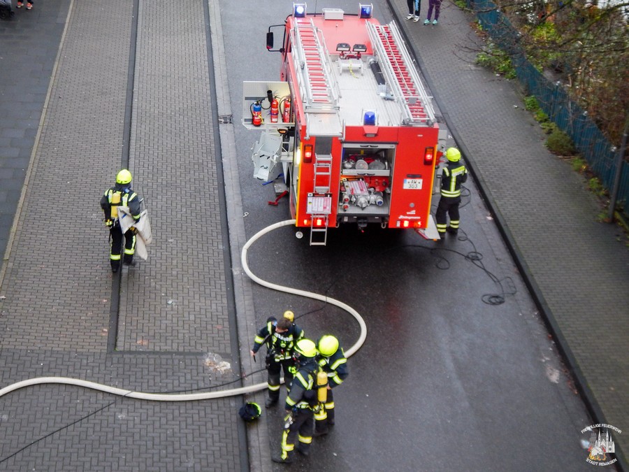 Bei Eintreffen der ersten Einsatzkräfte hatten drei Personen das Haus bereits unverletzt verlassen können. Ein Trupp ging sofort zur Brandbekämpfung unter Atemschutz in den verrauchten Keller vor. Zwei weitere Trupps suchten die Wohnungen und Geschäftsräume in dem Gebäude nach vermissten Personen ab. An der Kellertür installierte ein Trupp einen mobilen Rauchvorhang, dadurch wurde eine Rauchausbreitung in weitere Teile des Hauses verhindert.
