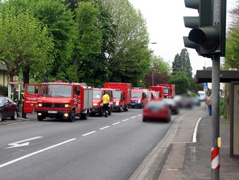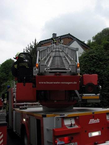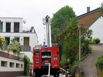 Am Vatertag kurz nach 11 Uhr, der diesjährige Tag der offenen Tür wurde gerade eröffnet, als die Einheit zur Unterstützung zu einem Brand in einem dreigeschossigen Wohnhaus nach Rolandswerth gerufen wurde. Sofort rückten gem. Alarmplan das TLF 16/25, DLAK 23/12 und der ELW 1 aus. Die zuerst eintreffenden Kräfte der Einheit Rolandswerth unter der Einsatzleitung von Stadtwehrleiter Michael Zimmermann fanden ein völlig verqualmtes Wohnhaus vor, die Bewohner befanden sich aber zum Glück nicht in dem Gebäude. Aufgrund der zuerst unüberschaubaren Lage wurde seitens der Einsatzleitung sofort Alarm für alle Einheiten des Stadtgebietes Remagen ausgelöst, unterstützt von Kräften der Feuerwehr Sinzig, die mit der Wärmebildkamera vor Ort waren. Aufgrund der Erhöhung der Alarmstufe wurden noch weitere Kräfte der Einheit an die Einsatzstelle beordert. Seitens der eingesetzten Kräfte wurde ein umfassender Löschangriff eingeleitet, so dass das Feuer nach ca. 30 Minuten unter Kontrolle war. Im Anschluss erfolgte die Belüftung des gesamten Gebäudes, welches noch stark verqualmt war, wobei der eigentliche Brandherd sich auf den Kellerbereich begrenzte. Personen kamen bei dem Einsatz nicht zu Schaden, zu Brandursache und Schadenshöhe kann seitens der Feuerwehr keine Angabe gemacht werden. Als Folge des Brandes kam es in Teilen der Ortslage Rolandswerth zu einem Stromausfall. Neben 97 Feuerwehrleuten mit insgesamt 15 Fahrzeugen waren auch der Rettungsdienst des Kreises Ahrweiler, der Rettungsdienst des Rhein-Sieg-Kreises, die Polizei, das RWE und die EVM vor Ort. Für die Zeit des Einsatzes wurde der Verkehr auf der parallel verlaufenden Mainzer Straße (B 9) einspurig an den dort abgestellten Einsatzfahrzeugen vorbeigeführt, die Verkehrsregelung erfolgte hier durch Beamte der Polizei.