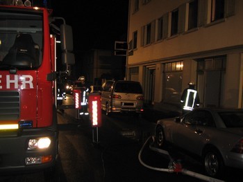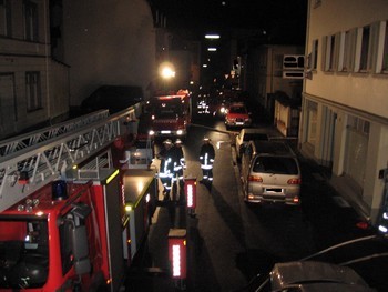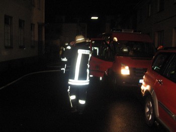 In der Nacht vom Montag auf Dienstag wurde gegen 01:46 die Einheit Remagen mittels Sirenenalarm zu einem Wohnungsbrand in die Seelenstrasse gerufen. Bei Eintreffen des zuerst eintreffenden KdoW wurde festgestellt, das es in einem zweieinhalb geschossigem Wohn- und Geschäftshaus zu einem Küchenbrand im 1 Obergeschoss gekommen war. Nach Auskunft des Wohnungsinhabers hatten sich 5 Personen selbstständig vor dem Brandrauch retten können, eine ältere Bewohnerin wurde noch in einer Wohnung im 2 Obergeschoss vermisst. Ein Vordringen zur der Person war ohne Atemschutz nicht mehr möglich, da das Treppenhaus ab dem 1 OG vollständig verqualmt war. Nach Eintreffen des kompletten Löschzuges nahmen 3 Atemschutztrupps unter Vornahme von C- Rohren die Menschenrettung vor. Gleichzeitig wurde die DLAK 23/12 als Anleiterbereitschaft vor dem Haus in Stellung gebracht. Nach kurzer Zeit konnte unter Einsatz einer Fluchthaube die Frau, welche noch geschlafen hatte, durch das Treppenhaus gerettet werden und im Anschluss an den Rettungsdienst übergeben werden. Die Person wurde im weiterem Verlauf durch einen RTW, zwecks des Verdachtes auf Rauchgasvergiftung, ins Krankenhaus gebracht. Während ein Trupp unter PA mittels C-Rohr den Küchenbrand bekämpfte, durchsuchten die beiden anderen Trupps noch mal beide Dachgeschosswohnungen. In der brennenden Wohnung konnte ein Vogel gerettet werden, mehrere vermisste Katzen konnten nicht gefunden werden. Die Tiere hatten wohl ebenfalls zwischenzeitlich die Wohnung verlassen. Nach Ablöschen der Brandstelle wurde mittels zweier Hochleistungslüfter das Wohnhaus rauchfrei gestaltet. Trotz der Belüftung war ein weiterer Verbleib der Bewohner im Haus nicht mehr möglich. Die Personen konnten vorübergehend bei Verwandten untergebracht werden. Nach Beendigung des Einsatzes wurde die Einsatzstelle zwecks weiteren Ermittlungen an die Polizei übergeben. Die Bewohner wurden nur durch das Auslösen der Warneinrichtung von Rauchmeldern vor der Gefahr gewarnt, da alle Personen geschlafen hatten. Im Einsatz waren neben 34 Einsatzkräften der Einheit Remagen und des Führungsdienstes, drei Streifenwagen der Polizei Remagen und ein RTW des DRK.