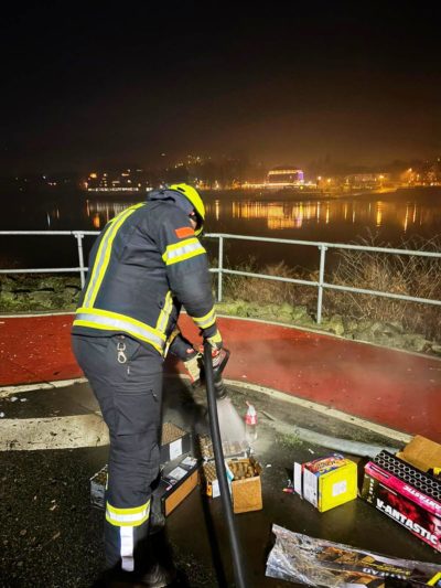 Bereits kurz nach dem Jahreswechsel rückte die Einheit Kripp unter dem Einsatzstichwort „Müllbrand“ aus. Vor Ort stand eine Feuerwerksbatterie in Flammen, die mittels Schnellangriff des Löschfahrzeuges zügig abgelöscht werden konnte.