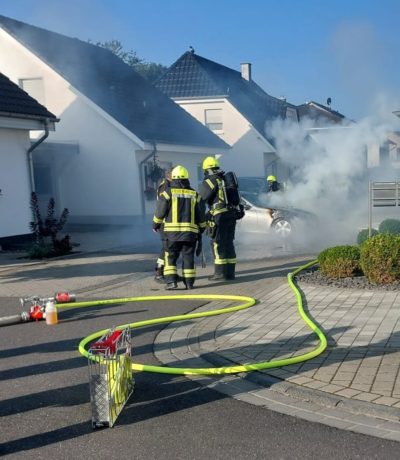 Die Einheit Kripp wurde zu einem PKW-Brand im Ortsgebiet Kripp alarmiert. Fahrzeughalter sowie ein Anwohner hatten nach Entdeckung des Brandes bereits versucht diesen selbst zu löschen. Dieser Löschversuch blieb erfolglos. Den beiden gelang es jedoch noch das Fahrzeug auf die Straße zu schieben, sodass ein Übergreifen des Feuers auf die angrenzende Wohnbebauung verhindert werden konnte. Beim Eintreffen der alarmierten Einsatzkräfte stand bereits der Motorraum vollständig in Flammen.