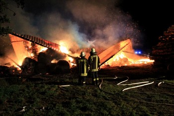 Am frühen Freitagmorgen wurde die Einheit Remagen zur Unterstützung der Feuerwehr Sinzig zu einem Brand nach Westum gerufen. Eine frei stehende offene Feldscheune, worin Strohballen und Hackschnitzel gelagert waren, brannte in voller Ausdehnung. Die Einheit unterstützte die Kameraden bei der Wasserversorgung mittels einer gelegten B-Leitung durch das MZF ( Beladung 1000 Meter B-Schlauch) und durch das TLF mittels Pendelverkehr . Weitere Kameraden unterstützten bei der Brandbekämpfung an dem Brandobjekt und bei der Ausleuchtung des Einsatzbereiches. Die DLAK konnte wegen der Lage nicht eingesetzt werden und verließ nach kurzer Zeit wieder die Einsatzstelle. Die letzten Kameraden-/innen aus Remagen beendeten den Einsatz gegen 05:30 Uhr.