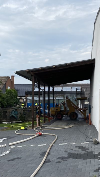 Bei Eintreffen der ersten Einsatzkräfte hatte sich das vermeintlich kleine Feuer zu einem Vollbrand des Schuppens entwickelt. Durch den Einsatz mehrerer Trupps unter Atemschutz und gleichzeitigen Löschmaßnahmen von zwei Gebäudeseiten konnte das Feuer erfolgreich gelöscht werden. Eine Person, die Rauchgase eingeatmet hatte wurde vorsorglich vom Rettungsdienst behandelt, konnte jedoch vor Ort verbleiben.