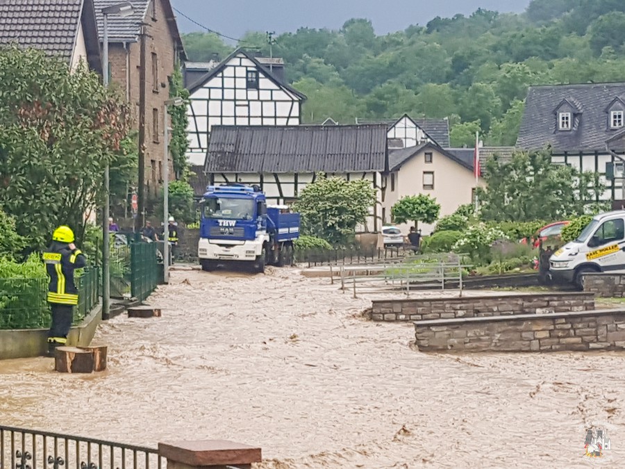 Am Samstagnachmittag zog erneut ein schweres Unwetter über das Stadtgebiet Remagen und die Grafschaft. Infolge der extremen Niederschläge im Einzugsbereich des Unkelbachs stieg dieser in kurzer Zeit stark an und überflutete Teile der Ortschaften Unkelbach und Oedingen. Dies machte den Einsatz aller Feuerwehren der Stadt Remagen, des THW, der Straßenmeisterei und der Polizei notwendig. Zur Unterstützung wurde die Feuerwehr Sinzig alarmiert, Einsatzkräfte der Feuerwehr Bonn befanden sich wegen einer Hochzeitsfeier in Unkelbach und boten spontan ihre Hilfe an.