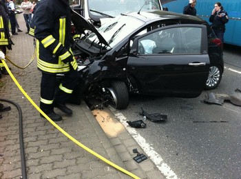 Gegen 17:10 Uhr wurde die Feuerwehr per Funkmeldeempfänger durch die Leitstelle Koblenz zu einem schweren Verkehrsunfall auf die Bundesstrasse 9 von Remagen aus Richtung Oberwinter gerufen. Gleichzeitig wurden die Feuerwehren aus Oberwinter und Rolandswerth per Sirene alarmiert. Bei Eintreffen der ersten Einsatzkräfte waren bereits alle Fahrzeuginsassen durch den zuerst eintreffenden Rettungsdienst befreit worden. Bei dem Unfall waren neben 3 PKW auch ein Kleinlastwagen beteiligt. Vier Personen wurden verletzt und anschließend durch das DRK zwecks weiterer Untersuchungen in ein Krankenhaus gebracht. Neben der Absicherung der Einsatzstelle oblag es der Feuerwehr auch ausgelaufene Betriebsstoffe aufzunehmen. Nach kurzer Zeit konnte die Einsatzstelle an die Polizei Remagen übergeben werden.