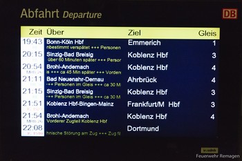 Am Sonntagabend alarmierte die Leitstelle Koblenz die Feuerwehr Remagen um 20:26 Uhr zu einem Einsatz in der Nähe des Bahnhofs Remagen.