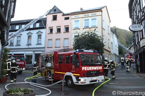 Remagen/ Linz. Am frühen Sonntagvormittag wurde die Drehleiter der Einheit Remagen zur Unterstützung der Feuerwehr Linz zu einem Wohnungsbrand in der Linzer Altstadt alarmiert. Siehe Bericht Feuerwehr Linz. [b]Bericht / Auszug / Einsätze 2011 / Homepage Feuerwehr Linz www.ffw-linz.de Bericht zum Wohnungsbrand am 16.10.2011 in der Linzer Altstadt:[/b] Es handelte sich um einen Brand im Bereich der [b]Küche[/b] und eines Balkons im Obergeschoss eines Wohn- und Geschäftshauses. Durch einen Linzer Feuerwehrmann konnten vor Eintreffen der Feuerwehr Linz bereits 4 Personen gerettet werden. Zwei weitere Personen retteten sich selbst vor dem Eintreffen der Einheit Linz. Das Feuer wurde von zwei Trupps mit C-Rohren im Innenangriff sowie zwei Trupps mit C-Rohren im Außenangriff über die Gebäuderückseite unter Atemschutz bekämpft. Zum Schutz der Nachbarbebauung, wurden über einen weiteren Trupp mit Kleinlöschgerät sowie zwei Drehleitern eine weitere Brandausbreitung verhindert. Nach der ersten Lageerkundung wurden umfangreiche Kräfte von Feuerwehr, Rettungsdienst, Energieversorgern etc. nachalarmiert. Die Kräfte wurden im Bereitschaftsraum stationiert und nach Bedarf zum Einsatz gebracht. Durch die Feuerwehr wurde auf der Gebäuderückseite ein Gerüst aufgebaut um in der verschachtelten Altstadtbebauung besser an die Brandstelle zu gelangen. Insgesamt wurden 5 Personen plus der erstrettende Feuerwehrmann zur Kontrolle ins Krankenhaus verbracht. Die E-stelle wurde nach Beendigung der Löschmaßnahmen durch Brandschauen regelmäßig kontrolliert. Einsatzende 12:23 Uhr. Die E-stelle wurde dem Eigentümer und der Polizei übergeben.