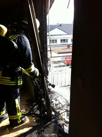 Am Donnerstagvormittag wurde die Feuerwehr Remagen von der Leitstelle Koblenz zu einem Wohnungsbrand in ein Mehrfamilienhaus an der Bundesstrasse 9 in Remagen gerufen. Bereits auf der Anfahrt war eine starke Rauchentwicklung zu sehen, so dass vom Einsatzleiter unverzüglich die Einheit Kripp nachalarmiert wurde. Bei Eintreffen der Feuerwehr hatten bereits alle Bewohner das Gebäude verlassen, ein im Erdgeschoss befindliches Geschäft war vom Eigentümer geräumt und verschlossen worden. Aus der betroffenen Wohnung im 2. Obergeschoss drang dichter Rauch, auf dem Balkon waren Flammen sichtbar. Durch die Einsatzkräfte wurde unmittelbar ein erstes C-Rohr im Außenangriff vorgenommen, um den Balkon abzulöschen, ein Angriffstrupp ging ausgerüstet mit Atemschutzgeräten unter Vornahme eines weiteren C-Rohres über die Drehleiter zur Brandbekämpfung ins Gebäudeinnere vor. Ein weiterer Trupp kontrollierte die übrigen Wohnungen im Haus, diese waren allesamt brand- und rauchfrei. Die Wohnung im 2. OG war komplett verraucht, es brannte neben dem Balkon ein kleiner Teil des Wohnzimmers, das Feuer konnte durch den ersten Angriffstrupp schnell abgelöscht werden. Abschließend wurde das Haus mittels Wärmebildkamera auf Glutnester kontrolliert, und die Einsatzstelle der Polizei übergeben. Brandermittler der Kriminalpolizei übernehmen die Ermittlungen, um die Brandursache aufzuklären. Die Bundesstraße 9 war während der Löscharbeiten in beide Fahrtrichtungen komplett gesperrt. Die Polizei Remagen leitete den Verkehr durch die Innenstadt um. Während der gesamten Einsatzzeit stand zwecks Eigensicherung ein RTW in Bereitschaft. Der Einsatz konnte nach ca. zwei Stunden beendet werden.
