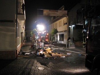 Remagen. Eine Vielzahl von Anrufern meldeten der Feuerwehr und der Polizei in den späten Abendstunden des Donnerstages (21:50 Uhr) den Brand einer Wohnung in einem Mehrfamilienhaus in der Remagener Innenstadt. Bei Eintreffen der ersten Kräfte stellte sich heraus, dass bereits alle Personen das Gebäude verlassen konnten, es waren lediglich noch zwei Katzen zu retten. Aus bisher unbekannter Ursache brannte eine Wohnung im ersten Obergeschoss des Eckhauses. Durch die enorme Rauchentwicklungen wurden auch alle anderen Wohnungen des Gebäudes in Mitleidenschaft gezogen. Im Rahmen der ersten Rettungsmaßnahmen wurde ein Beamter der Polizeiinspektion Remagen leicht verletzt und musste kurzzeitig im Krankenhaus Remagen versorgt werden. Ein Trupp unter Vornahme eine C-Rohres übernahm die Brandbekämpfung, ein weiterer übernahm die Überprüfung der weiteren Wohnungen. Die Drehleiter wurde als Anleiterbereitschaft in Stellung gebracht. Wegen der zuerst unklaren Lage war unverzüglich die Einheit Kripp nachalarmiert worden. Die umfassende Brandbekämpfung, geleitet von Wehrleiter Michael Zimmermann und Einheitsführer Alexander Krahe, führte sehr schnell zum Erfolg, so dass bereits gegen 22:15 Uhr der Brand unter Kontrolle war. Es folgte nun, neben den Nachlöscharbeiten, die mittels Überdrucklüfter durchgeführte Belüftung des gesamten Wohnhauses. Gleichzeitig wurde mit der erst im letzten Jahr angeschafften Wärmebildkamera das gesamte Gebäude und das Nachbarhaus nach versteckten Glutnestern abgesucht. In diesem Verlauf wurden drei weitere Trupps unter PA eingesetzt, die außerdem Brandgut aus dem Haus transportierten. Die Brandwohnung wurde vollständig zerstört, weitere fünf Wohneinheiten wurden erheblich durch den Brandrauch beschädigt. Hinsichtlich der Brandursache hat die Polizei vor Ort die Ermittlungen aufgenommen, zur Höhe des Sachschadens können zur Zeit noch keine Angaben gemacht werden. Die Feuerwehr Remagen war mit insgesamt sechs Fahrzeugen und 26 Einsatzkräften vor Ort. Unterstützt wurde der Einsatz von der Einheit Kripp und dem Führungsdienst mit insgesamt drei Fahrzeugen und 19 Einsatzkräften, zusätzlich waren die Polizeiinspektion Remagen und der Rettungsdienst vor Ort.