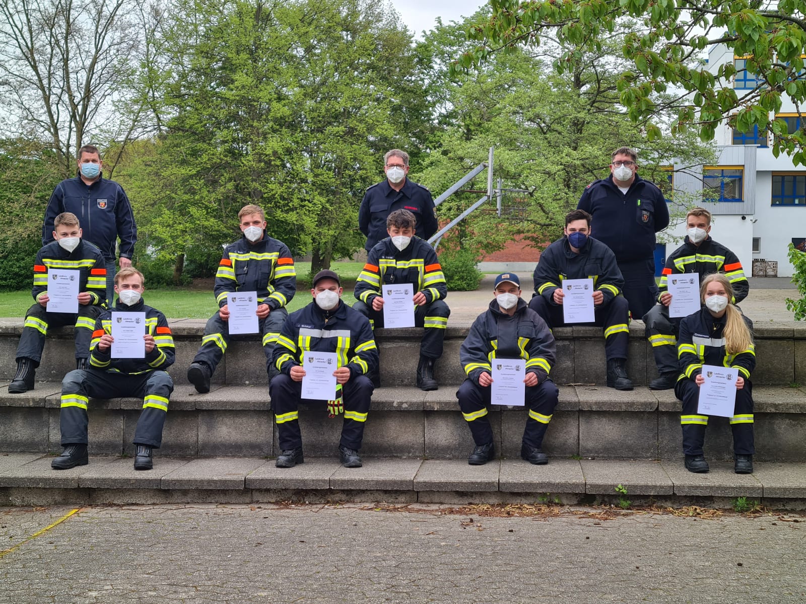 Trotz der aktuell bestehenden Corona-Beschränkungen gelang es, in der Zeit vom 14.04. bis zum 08.05.2021, einen Grundlehrgang für den Dienst in der freiwilligen Feuerwehr durchzuführen. Um die Abstands- und Hygieneregeln zu wahren, wurde der gesamte, recht umfangreiche, theoretische Teil in der Form des Online-Unterrichts durchgeführt. Die praktischen Anteile wurden im Anschluss auf dem Schulhof der IGS Remagen absolviert, denn hier ist genug Fläche vorhanden, um die geforderten Abstände einzuhalten.