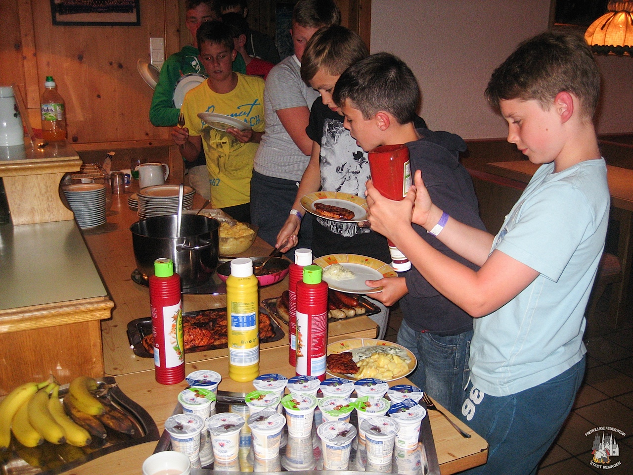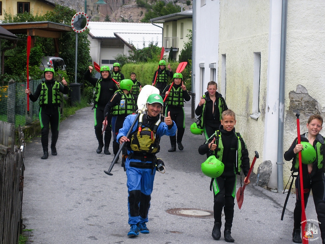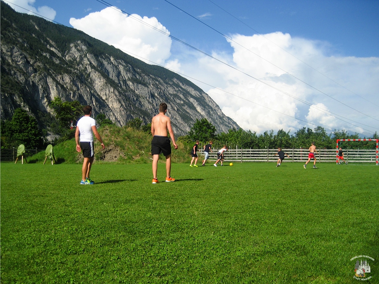 See gefragt, dort wurde sich so richtig im Bergwasser abgekühlt. Eines der Highlights war die Rafting Tour auf dem Inn, mit je acht bis zehn Personen im Boot ist hier Teamwork gefragt um die vielen Am 26.07.2014 war es wieder soweit, nachts trafen sich die Jugendfeuerwehrmitglieder am Gerätehaus in Remagen um gemeinsamem mit 4 Leihfahrzeugen in den Süden zu starten. Ziel der Tour war ein Jugendgästehaus in Ritzenried in Österreich (Pitztal). 16 Jugendliche und sechs Betreuer nahmen an der Tour teil. Nach einer ca. achtstündigen Autofahrt mit mehreren Pausen, kamen wir dann in dem beschaulichen Dorf Ritzenried an. Um 10 Uhr wurden die Zimmer eingeteilt, die Betten bezogen und alles häuslich eingerichtet. Nach einer Stärkung am Mittag ging es dann sofort mit dem Programm los, wir wanderten von Hoch Imst auf die Untermarkter Alm in 1550 m Höhe, der Weg ins Tal war jedoch wesentlich rasanter. Die Remagener Reisegruppe bestieg die Wagen der „Alpin Coster Bahn“, die weltweit größte Alpenachterbahn der Welt. In zehn Minuten wurde eine rasante Strecke von 3535 m in einem waghalsigen Tempo bis ins Tal zurückgelegt. Wieder in Ritzenried angekommen, wurde im Jugendgästehaus der Grill angeschmissen und sich reichlich nach dem sportlich-spannenden Nachmittag gestärkt. Nachdem alle satt waren, saß man in gemütlicher Runde zusammen und spielte Karten. Bei mehreren Partien „Uno“ und Gesellschaftsspielen unterhielt man sich über den Tag und das Erlebte.