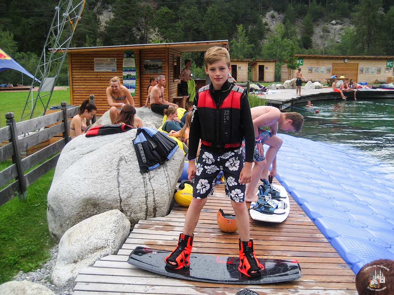 Danach ging es mit den Leihfahrzeugen zum Piburger See, wo dann nach einer kurzen Wanderung um den See die Badeanstalt besucht wurde. Der Sprung in den mit 22 Grad Celsius wärmsten Sees Österreichs sorgte neben einer willkommenen Abkühlung auch für große Begeisterung bei Kindern und Betreuern.