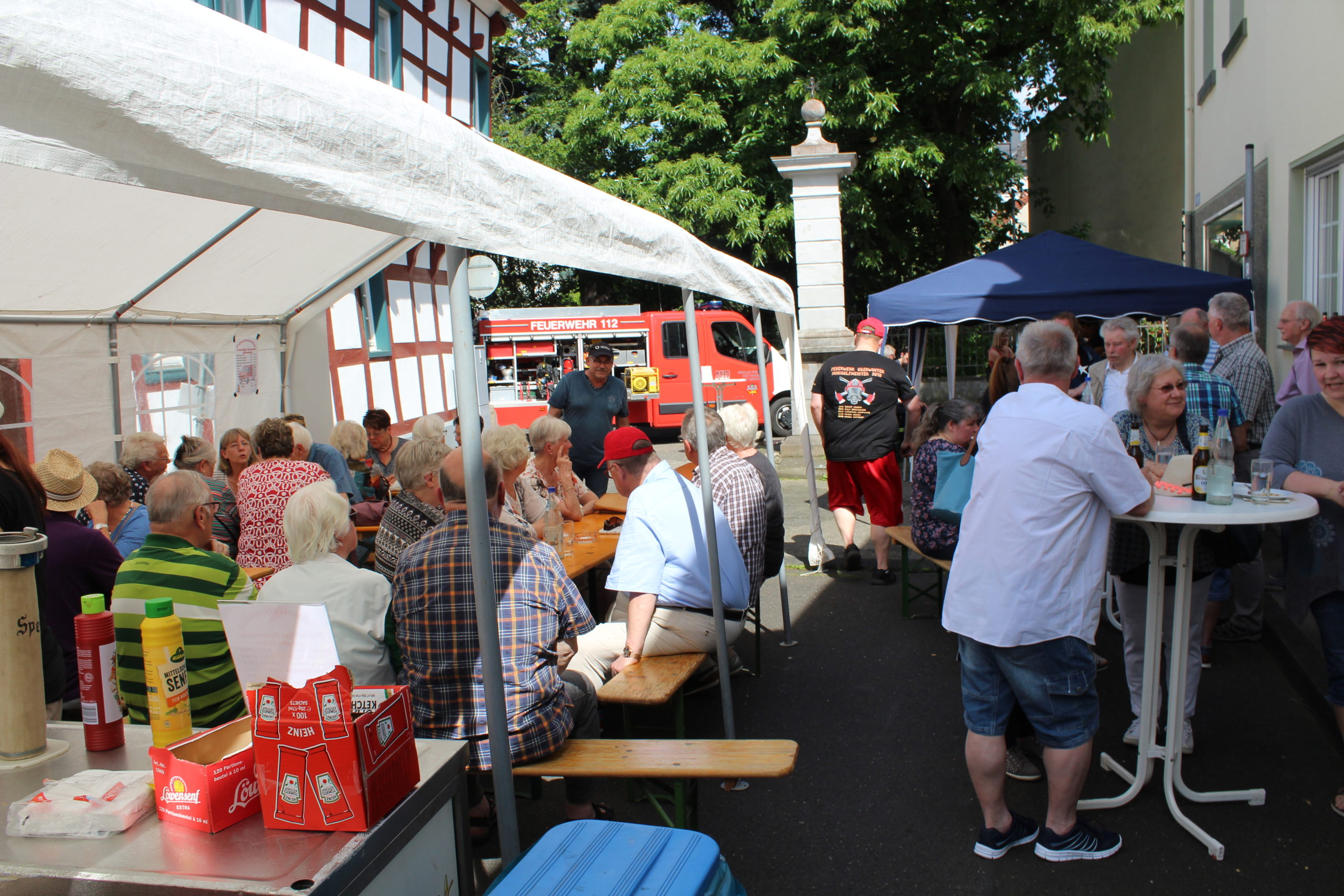 Bei kühlen Getränken Würstchen, Kaffee und Kuchen, präsentierten sich die Wehrleute nebst der Jugendfeuerwehr. Neben den ausgestellten Einsatzfahrzeugen die es zu bestaunen gab konnte sich im persönlichen Gespräch über die Arbeit einer Feuerwehr informiert werden. Die Jugendfeuerwehr hielt allerhand lustige Spielideen für die kleinsten und kleinen Besucher parat, sehr beliebt war unter anderem das Zielspritzen mit der Kübelspritze bei dem die jungen Besucher ihr Geschick am Strahlrohr austesten konnten.