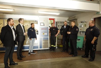 Am Donnerstag, 30. Oktober 2025, wurde die Anlage offiziell in Betrieb genommen. Neben Bürgermeister Björn Ingendahl nahmen Wehrleiter Ingo Wolf, Schlauchwart Matthias Slupik und der hauptamtliche Gerätewart Michael Weyrich die neue Technik feierlich in Empfang.